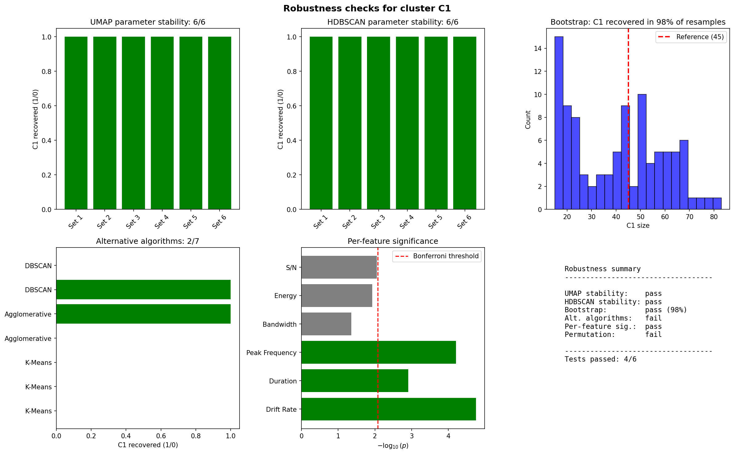 - HDBSCAN parameters: C1 recovered in 6/6 tested configurations